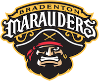 Notice: All logos on this page are included within the parameters of 17 U.S.C. § 107, which states that the reproduction of a copyrighted work for purposes of criticism and/or comment is not an infringement of copyright. No challenge to the copyrights of these logos is intended by their inclusion here. Posted 2015 July 6 Last week I reviewed the Bristol Pirates. A fair amount of the time was spent discussing how lame it is that all of the Appalachian League team use their parent team's name and almost all of them use their parent team's logo. This week I'm reviewing a logo for a team from the Florida State League, which used to be almost as bad. In 1993, eleven out of twelve teams in the FSL were using their parent team's name. Today, that number is down to four-and-a-half (the Lakeland Flying Tigers are affilaited with Detroit). It's a massive improvement, which gives me hope that one day the Appalachian League will get out of its rut, too. Most of the FSL teams that don't use their parent team's name simply forge their own identity, picking a nickname that has nothing at all to do with the parent. There's no way to tell from the name that the Brevard County Manatees are affiliated with the Milwaukee Brewers, or the Fort Myers Miracle with the Minnesota Twins, or the Charlotte Stone Crabs with the Tampa Bay Rays. But Bradenton's team takes a different approach. Their affiliate is the Pittsburgh Pirates, and it's not hard to see the relation between marauders and pirates (and the logo drives the point home). The Marauders are in fact owned by Pittsburgh, so this is a deliberate attempt to pay homage to the parent team without using their name. A couple of other teams in various sports have done similar things: the Los Angeles Kings either own or once owned the Manchester Monarchs and the Reading Royals; the Philadelphia 76ers' D-League team is the Delaware 87ers (Delaware was the first state to ratify the U.S. Constitution, and did so in 1787). Personally, I kind of like this approach. In general I prefer just letting the team have its own identity, but I can understand that when a major-league owns a minor-league team, it might want the team it owns to have some reference back to the parent team. Using variations on the name is a good way to do this. Getting back to last week's review, the obvious thing to do would be to call the team the Bristol Buccaneers. Coming back to the FSL to deal with the remaining holdouts, maybe the Tampa Yankees could become the Tampa Snowbirds and the Dunedin Blue Jays could become the Dunedin Scrub Jays. The St. Lucie Mets and Palm Beach Cardinals are left as an exercise to the reader, which is another way of saying I can't think of anything. As I said a paragraph or two ago, the logo drives home the fact that the Marauders are affiliated with the Pirates. The team colors are the same as Pittsburgh's. And of course, there's a pirate in the logo. The pirate in the logo even has a pair of crossed bats on his hat, which is a motif that the Pirates have used off and on for the past eighty years or so. The logos from the late 1930s through the 1950s had the crossed bats on their hat just like the Marauders' pirate, as did the Pirates' logo in the late 1980s and early 1990s. Since the mid-1990s the crossed bats haven't appeared on the pirate's hat in Pittsburgh's logo (largely because the pirate isn't wearing a hat), but they're still part of any Pittsburgh Pirates logo that includes the pirate. All of this contributes to the Marauders logo being a good one. But even if you ignore all of that, there's the simple fact that this is a well-drawn pirate. The toothy grin is perhaps a bit much, but overall this is a pirate who looks intimidating as he stares straight at you. He's not cutesy, but more importantly, he's not drawn to look so tough that in the end he winds up looking silly instead. It's just a very good logo to go with a very good name. I think that every minor league team that currently uses its parent team's name and logo would do well to look at this example and learn from it.