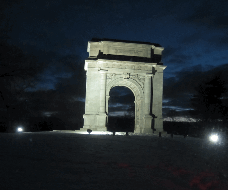 What I didn't realize at the time was that the reason there were no houses or businesses is that I had inadvertantly turned into Valley Forge National Park. I had known it was somewhere in the general vicinity, but I was too focused on dinner to realize it was literally across the street when I made that wrong turn, and thus in making that wrong turn I turned into the park. The monument I saw was the National Memorial Arch, dedicated to all the soldiers and officers who had spent the winter of 1777-78 in Valley Forge. To call that moment awe-inspiring is perhaps an exaggeration, but not much of one. It was utterly unexpected, and utterly beautiful.