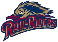 Notice: All logos on this page are included within the parameters of 17 U.S.C. § 107, which states that the reproduction of a copyrighted work for purposes of criticism and/or comment is not an infringement of copyright. No challenge to the copyrights of these logos is intended by their inclusion here. Posted 2021 July 25 There is nothing I understand about this team's name or logo. Nothing. I do not understand why they go with the unwieldly "Scranton/Wilkes-Barre" as their location name. It is not completely ludicrous, insofar as there is a "Scranton" and a "Wilkes-Barre" near where this team plays. But there is not a "Scranton/Wilkes-Barre". Nor should there be; names should not require that many punctuation marks. Scranton is the biggest city in the region, so they could presumably go with that if they wanted even through they don't actually play within Scranton city limits (their stadium is in the town of Moosic, which is between Scranton and Wilkes-Barre). They could go with Moosic since that's where they actually are. Or they could go with "Wyoming Valley", which is apparently how the region is generally referred to. (And truthfully, that's one more thing I don't understand: you would expect the river going through the Wyoming Valley to be the Wyoming River, but in fact it's the Lackawanna River.) In any case, "Scranton/Wilkes-Barre" is just bizarre. But as it turns out, they're not alone in this unwieldly appellation. The hockey team nearby reverses the two and calls itself the Wilkes-Barre/Scranton Penguins. Two teams that folded in recent years are the Scranton/Wilkes-Barre Steamers basketball team and the Wilkes-Barre/Scranton Pioneers indoor football team. In theory, there's supposed to be safety in numbers. This time I'm making sure there isn't. See, I can actually punish them for this, because the fact that the area is generally referred to as "Wyoming Valley" makes "Scranton/Wilkes-Barre" a made-up compound word. Which is a penalty. And since it's the location name rather than the nickname that's a compound word, it's an "egregious" example in my book. Oh, wait: the nickname (which we'll get to in just a moment here) is also a made-up compound word, which makes it doubly egregious. I also do not understand why they chose a name like RailRiders. Now, it is true that Scranton has a connection to the rail industry. The Lackawanna Steel Company, located in Scranton, made railroads. As in, they made the actual rails that railroad companies would lay to create the railroads. Okay, fine, but what has that got to do with riding railroads? There were passenger railroads in the area at one time, but you can say that about plenty of places. Today, if you want to be a passenger on a train and are in the Wyoming Valley area, you have to drive over an hour to hop on a commuter train between Quakertown and Philadelphia. Why not just call the team the Railroaders? Or the Locomotives? I'm not saying these are great names (particularly Railroaders), but they'd definitely be an improvement. But if I sort of don't understand the name, I really do not understand the logo. Why, oh why is there a porcupine in this logo? According to the team, it's because when they held a "Name the Team" contest they allowed voters to pick their top three choices in order, and while "RailRiders" got the most #1 votes "Porcupines" was in the top three more than any other name. I'm skeptical, because I'm always skeptical of Name the Team contests (with good reason, I might add). I suspect someone just wanted to stick a porcupine in the logo for reasons I can't even begin to imagine and would rather not try to. Also, it's not just a porcupine. This porcupine is as wide as the tracks. Assuming standard gauge rails, that makes it thirty or forty times the size of a typical porcupine. It looks like it's literally riding the rails, with its feet in direct contact with the rail. I won't pretend to understand how this is possible.