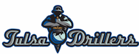 Notice: All logos on this page are included within the parameters of 17 U.S.C. § 107, which states that the reproduction of a copyrighted work for purposes of criticism and/or comment is not an infringement of copyright. No challenge to the copyrights of these logos is intended by their inclusion here. Posted 2012 May 13 The name "Tulsa Drillers" obviously comes from the presence of the oil industry in and around Tulsa. Teams from Tulsa often have names based around that industry: several teams in several sports have called themselves the Tulsa Oilers, there used to be a junior hockey team called the Tulsa Crude, and of course you have these guys. So it's kind of interesting that the Drillers name was actually first used when the team played in Lafayette, Louisiana, and kept when the team moved to Tulsa in 1977. I have no idea why a team in Lafayette was named the Drillers. There is apparently a shopping center in Lafayette called the Oil Center, so apparently there was an oil industry there at one time, but this is all news to me. But regardless of why the team was called the Drillers in the first place, one can easily see why they kept the name when they moved to Tulsa. Rare is the case of a team moving to a city and finding their nickname fits the new city better than it did the old one, but it happened here. (The only possible other example I can think of is when the Baltimore Bullets moved to Washington...but let's face it, the name isn't exactly inappropriate in Baltimore, now, is it?) And then there's the logo. On the one hand, I have to give them credit. You look at as many logos featuring some Warner Bros. cartoon reject as I have, and you start giving credit to anything that is truly different. And this, my friends, is truly — truly — different. Even among logos that feature a human being performing an occupation, I don't think any of them before have given that human being grey skin. And I'm almost positive that all of them have given that human being a head. And even if I'm wrong and there are any other headless humans in sports logos, I'm absolutely positive that none of them put a hat on top of that missing head. So they get credit for being different. But I'm sure they lose a little bit of credit for being creepy. As if headless drillers with grey skin weren't enough, there's apparently a blue light being shone on him, which adds a fairly ghostly effect to everything. And then there's the question of what the hell is going on. I'm not sure what Ichabod is trying to accomplish in the logo. He is indeed holding a very large drill bit (one that has pierced a light blue baseball, no less). But I don't see how he could actually turn the bit with his hands in that position, and turning the bit is generally the purpose of a drill. He looks more like he's churning butter than anything else. Churning butter is obviously more benign than using a drill, which is in many ways a menacing act if you think about it. But look at the guy: you expect him to be going something menacing. Make him do something benign and it becomes even scarier. It's sort of like the scene in the horror movie with the children in the middle of the field (under a full moon at midnight) playing Ring Around the Rosie. Kids playing Ring Around the Rosie is normally a good thing. Under a full moon in a horror movie, not so much. It's a tension builder, because you just know the crazy bastard with the machete is going to show up any second. That's what this logo does. It builds tension like a horror movie. Except that since this is a single frame, that tension is never...going...to...resolve. In short, this logo is a great way to get inside the heads of the other team's players. They may not analyze it the way I just did, but subconsciously this logo is going to freak them out. There's just one problem: The Drillers don't actually put this logo on their uniforms. That's so stupid I don't have words for it. If you have an advantage over the other team, you use it. Put this guy on the caps, on the jersey, and on every flat surface in the stadium. Then play creaking-door and footstep sounds over the loudspeaker at random intervals. Finally, put a group of children in the outfield playing Ring Around the Rosie. You'll win every single home game, I guarantee it. Indeed, pretty soon teams will be refusing to show up for games and you'll win every home game without even having to do anything. Of course, your fans will be too scared to show up, and you'll go broke from the lack of ticket sales, but you'll still go down in history as having the best home record in the history of baseball. So it's worth it, right?
