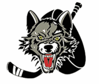 Notice: All logos on this page are included within the parameters of 17 U.S.C. § 107, which states that the reproduction of a copyrighted work for purposes of criticism and/or comment is not an infringement of copyright. No challenge to the copyrights of these logos is intended by their inclusion here. Posted 2004 February 6 I'm beginning to get just a bit frustrated here. The last two logos I reviewed -- for the Johnstown Chiefs and the Augusta Lynx -- were both fairly gentle; the Chiefs review was in fact highly positive. I believe in giving credit where credit is due, but let's face it: I'm not writing these (and you're probably not reading them) for the positive reviews. The point here is to mercilessly mock logos which deserve to be mercilessly mocked. This is easy to do when the next team on the agenda is someone like the Amarillo Gorillas. But when it's a good logo, it's difficult to find inspiration. And here I am, being confronted by one of the best logos in all of minor league hockey. It's not perfect, of course. We do have the gratuitous puck and stick, and the relative sizes make for a rather bizarre mental picture (imagine a puck that's four feet in diameter and you see what I mean). But they're clearly not intended to be proportionally sized, and somehow that's less of a sin than if they were (don't ask me how; it just is). And then there's the wolf itself. This is arguably the most realistic depiction of an animal in any professional sports logo, period. And it just plain works. As I noted in my review of the Fresno Falcons, the face-to-face view is very compelling -- especially on an animal which people tend to be rather nervous around to begin with. I'm really not sure why so few teams use this effect, but for some reason they don't. As usual, a lot of the magic is in the details. Look at the teeth, for example. This isn't the cartoonish toothy grin of the fish in the Toledo Walleye logo. It isn't the reasonably accurate, yet still stylized set of teeth the lion in the Reading Royals logo. We get to see every tooth, and the effect is much more convincing. The little detail of making the teeth less than perfect (they're asymmetrical, for starters) makes it even more effective. I would be scared if I was face-to-face with a lion, but the Reading lion doesn't scare me because it looks like a representation of a lion rather than looking like a lion. This doesn't look like a representation of a wolf, it looks like an actual wolf. And when I look directly into the eyes of this wolf, some little nerve in the less-developed portion of my central nervous system twitches like a scared little hairless ape. This is exactly the effect a logo should have. Since this page has already descended to the level of a lovefest, let me actually stoop to the point of saying good things about the puck and stick. They actually serve a purpose in this logo. First, they keep the logo from being too symmetrical. Second, by being in the background, they reinforce the fact that the wolf's face is the foreground, which increases the immediacy. I have a souvenir from the year the Wolves won the Turner Cup, and it shows just the wolf without the puck and stick. The effect isn't as powerful. Okay, enough with the warm fuzzies. Where's the next logo? I can't wait to be mean again...