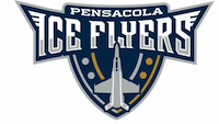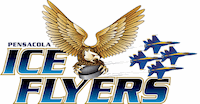 Notice: All logos on this page are included within the parameters of 17 U.S.C. § 107, which states that the reproduction of a copyrighted work for purposes of criticism and/or comment is not an infringement of copyright. No challenge to the copyrights of these logos is intended by their inclusion here. Posted 2012 October 29 NOTE: Much of the early part of this review came from the review of the Ice Flyers' previous logo, partly because it's not directly related to the logo itself and partly because I really liked it and didn't want to get rid of it. The history of Pensacola can be summed up in two words: "military" and "hurricanes". If you doubt this, consider this brief, yet comprehensive and occasionally accurate history of the place: The first Europeans to settle in Pensacola (and incidentally, these were also the first Europeans to settle anywhere in what today is the continental United States) arrived in August of 1559. They were there for exactly five weeks when a hurricane came in and killed over 400 of them — nearly a third of the settlement. The remaining people wisely said to themselves "God doesn't want us here and is trying to kill us," and left. About a quarter of them headed to what today is Parris Island in South Carolina, where they were hit with another storm. At this point they said to themselves, "Okay, maybe the place has nothing to do with it...God just has it in for us." They scattered at this point, presumably hoping that would make it too complicated for God to come after them with weather. I'm guessing God just started resorting to heart attacks at this point, but the history books don't have much to say about this. Meanwhile, Pensacola wasn't settled by Europeans again for over a century. Then the Spanish came back in 1698, and lived there happily until the French military occupied the area a quarter century later. The occupation lasted three years, at which point the French were driven out of the area by — you guessed it — a hurricane. The Spanish came back and promptly built a big statue to Our Lady of We Are So Thankful Someone Else Got Smote By A Storm For Once. This, they hoped, would appease God. God apparently decided this was good for thirty years of hurricane-free weather, because for exactly thirty years the Spanish were fine. Unfortunately, the Spanish neglected to erect another statue to Our Lady of We Still Love You God And Oh By The Way Please Keep Keeping Those Hurricanes Away, so God went back into "smite" mode and ravaged the city with a hurricane again in 1752, and then one more time in 1761 because they hadn't yet built the statue to Our Lady Of Oh Please God We Are So Sorry Here Have a Statue We Love You We Do We Really Do Please Stop Killing Us. Two years later the British took control of the city as spoils after defeating both the Spanish and the French in the Seven Years' War. The Spanish acted upset, but in reality they were thinking, "Fine! Take the stupid city! We hope you get hit by a hurricane next year!" Indeed, they were so happy to be rid of the place that when they were done helping the Americans win independence eighteen years later, they made the British give it back to them. On their way out, the British told the Spanish that there hadn't been any hurricanes lately and they were sure the Spanish would be safe there. The British then boarded ships and snickered all the way back to Portsmouth. The Americans were of course more than willing to let Spain have Pensacola (and the rest of Florida), since they were grateful to Spain for helping them gain independence. They showed their gratitude by sending the American army into the area three times in the 1810s. The Spanish were too busy dealing with rebellions in Mexico and Colombia to be able to deal with puny little Florida, so in 1821 they gave it to the United States. Their parting words, according to the chronicles of the day, were "¡Diga hola a los huracanes para nosotros!" (translation: "Say hi to the hurricanes for us!") The Americans then built a navy yard and an army fort, which appears to have scared off the hurricanes for a little while. Then in 1861, some Einstein over in Tallahassee saw how much fun South Carolina and Mississippi had had seceding, and decided to follow suit. The people of Pensacola, intoxicated with the joy of no longer being Americans, decided it was time for a fresh start and tried to chase all the hurricanes and all the military as far from Pensacola as they could. They succeeded in chasing the military a whole six miles away, to the army fort that had been built back when the Americans first took over. The Union soldiers then waited about sixteen months and then took the city back. They burned much of the city to the ground in the process, causing Pensacolans to say to one another, "Hey, do you remember the good old days when it was the hurricanes that caused all the damage around here? Yeah...good times!" The military is still in Pensacola, although fortunately for the citizens the Civil War is over and the military isn't trying to burn the city down any more. Instead, the navy base is home to the Blue Angels, meaning that the military is now primarily engaged in the vital function of flying barrel loops. It is therefore appropriate that the name and logo of this team reference both the military and hurricanes. The military reference is obvious: nothing says "navy" like a reference to flying. The reference to hurricanes may be a bit more subtle but it's there. What's the reference? This name blows. I understand why they didn't go with the much simpler "Flyers" — that name is already taken by an NHL team. But "Ice Flyers" simply doesn't work. "Ice Flyer" sounds like a rejected name for a superhero (or maybe a name for a rejected superhero...or even a rejected name for a rejected superhero). I'm sure they could have come up with a better flying reference if they had sat down and thought about it for five minutes. I just thought about it fo